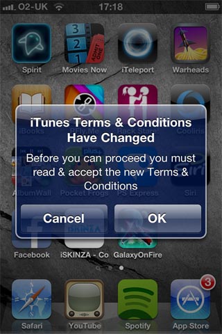 “Le Condizioni e le Regole di iTunes sono cambiate. Prima di procedere dovrai leggerle ed accettarle”