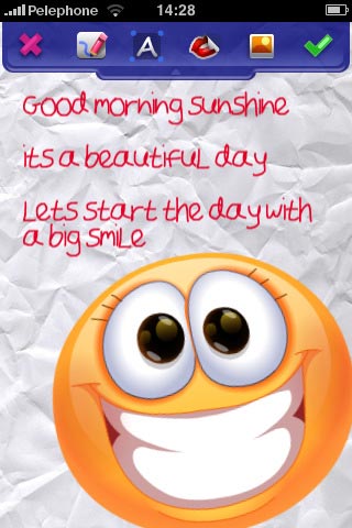 Ma non e’ finita qua: l’applicazione iPhone MyFont ci consentira’ anche di cambiare il colore del set di caratteri da noi creato, la grandezza dei medesimi, di inserire disegni e di poter scegliere il tipo di carta su cui scrivere la mail (in parole povere lo sfondo).