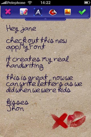 In che modo e’ possibile far cio? Semplicemente andando a scrivere con iPhone l’alfabeto, lettera per lettera, di proprio pugno (o meglio di proprio dito). Una volta riscritte tutte le lettere potremo salvare il nostro alfabeto personalizzato (o set di font che lo si voglia chiamare) ed il gioco e’ fatto: i nostri amici riceveranno email che assomiglieranno incredibilmente a lettere scritte a penna!