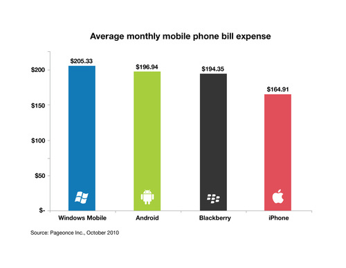Un altro curioso dato emerso e’ il seguente: i possessori di iPhone mediamente hanno minori costi telefonici mensili: forse perche’ iPhone e’ talmente bello che e’ piu’ il tempo impiegato a guardarlo di quello per l’effettivo utilizzo?