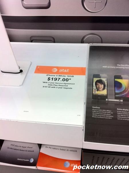 Questo e’ quello che si evince da quanto rilasciato da PocketNow che ha pubblicato una foto scattata in un negozio della catena Walmart illustrante un avviso sulla imminente possibilita’ di acquisto di iPhone 4 bianco 16GB a $ 197 (in abbinamento a piano AT&T). Sembrerebbe questione di giorni …