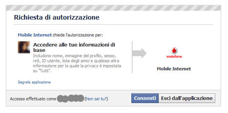 - Dare l’autorizzazione all’applicazione di Vodafone Italia per consentirgli l’accesso al vostro profilo